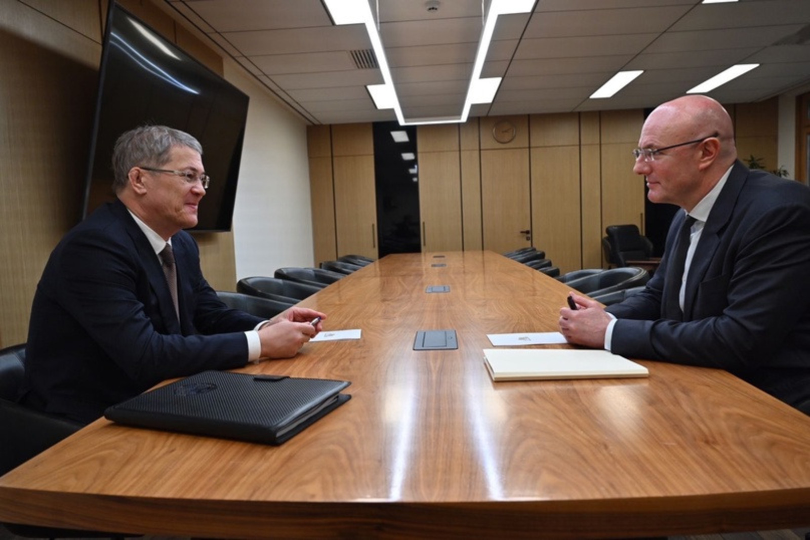 "С заместителем Председателя Правительства России Дмитрием Николаевичем Чернышенко обсудили реализацию в республике прорывных проектов, - сообщил с соцсетях Глава республики Радий Хабиров.