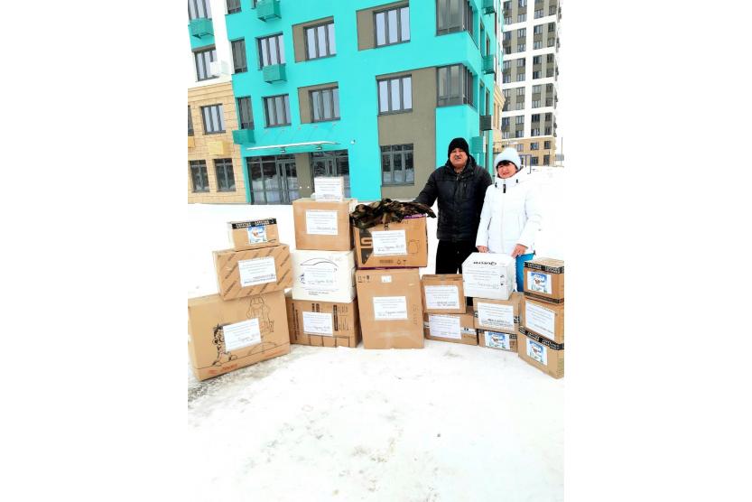 Сети с гостинцами и необходимыми вещами были переданы жене военнослужащего. В ближайшее время все это отправится на фронт.