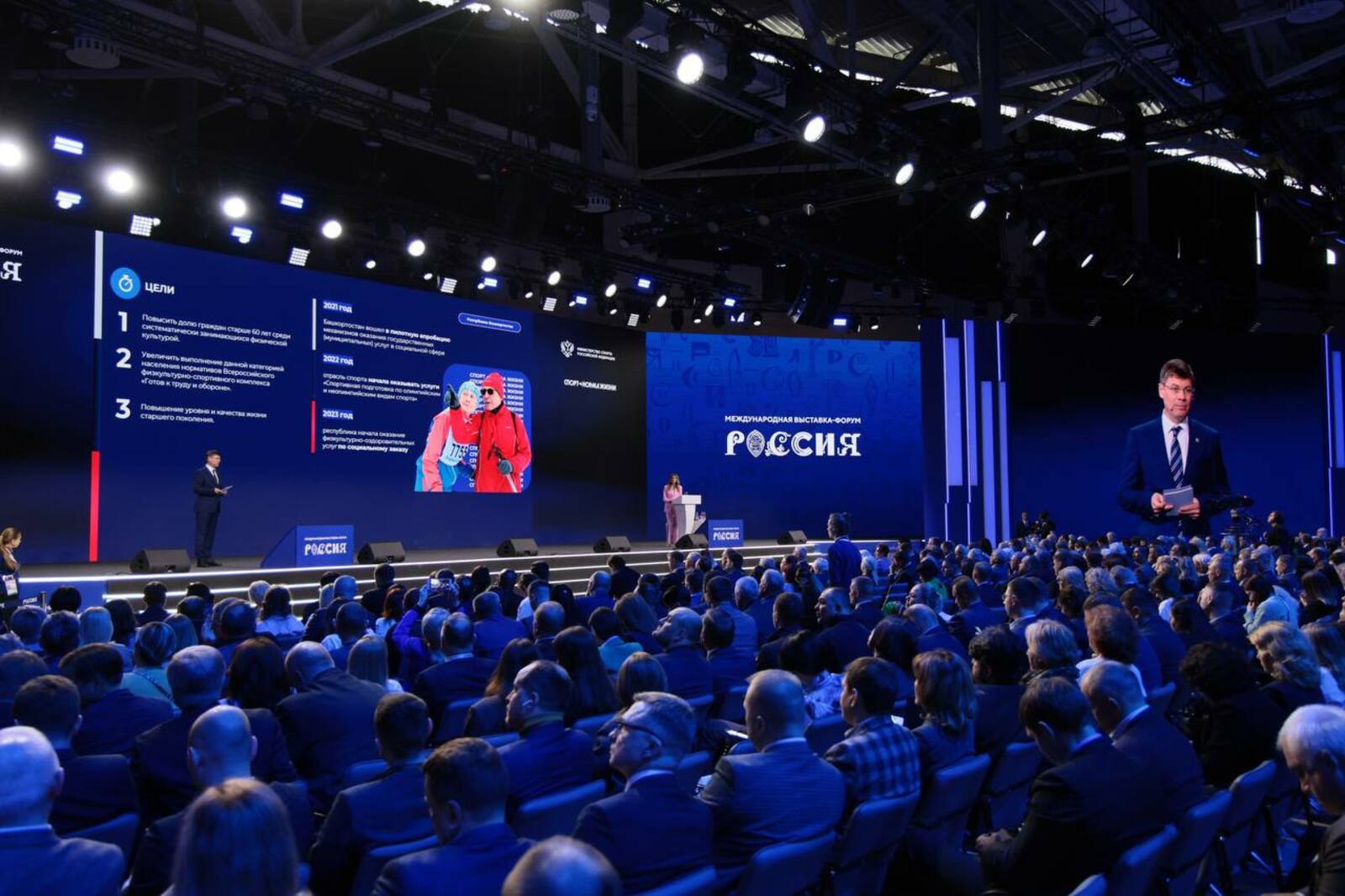 В Москве на выставке «Россия», которая проходит на ВДНХ, состоялось пленарное заседание «Успехи развития сферы физической культуры и спорта». В нем приняли участие зампредседателя правительства РФ Дмитрий Чернышенко, помощник президента России Игорь Левитин, министр спорта Россиии Олег Матыцин, президент Олимпийского комитета России Станислав Поздняков, а также спортивных ведомств и организаций.